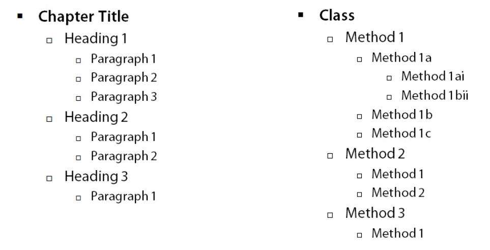 - Classes are like headings in a book