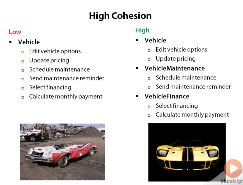 - Cohesion is the measure of how related a classes functions and responsibilities are to one another.